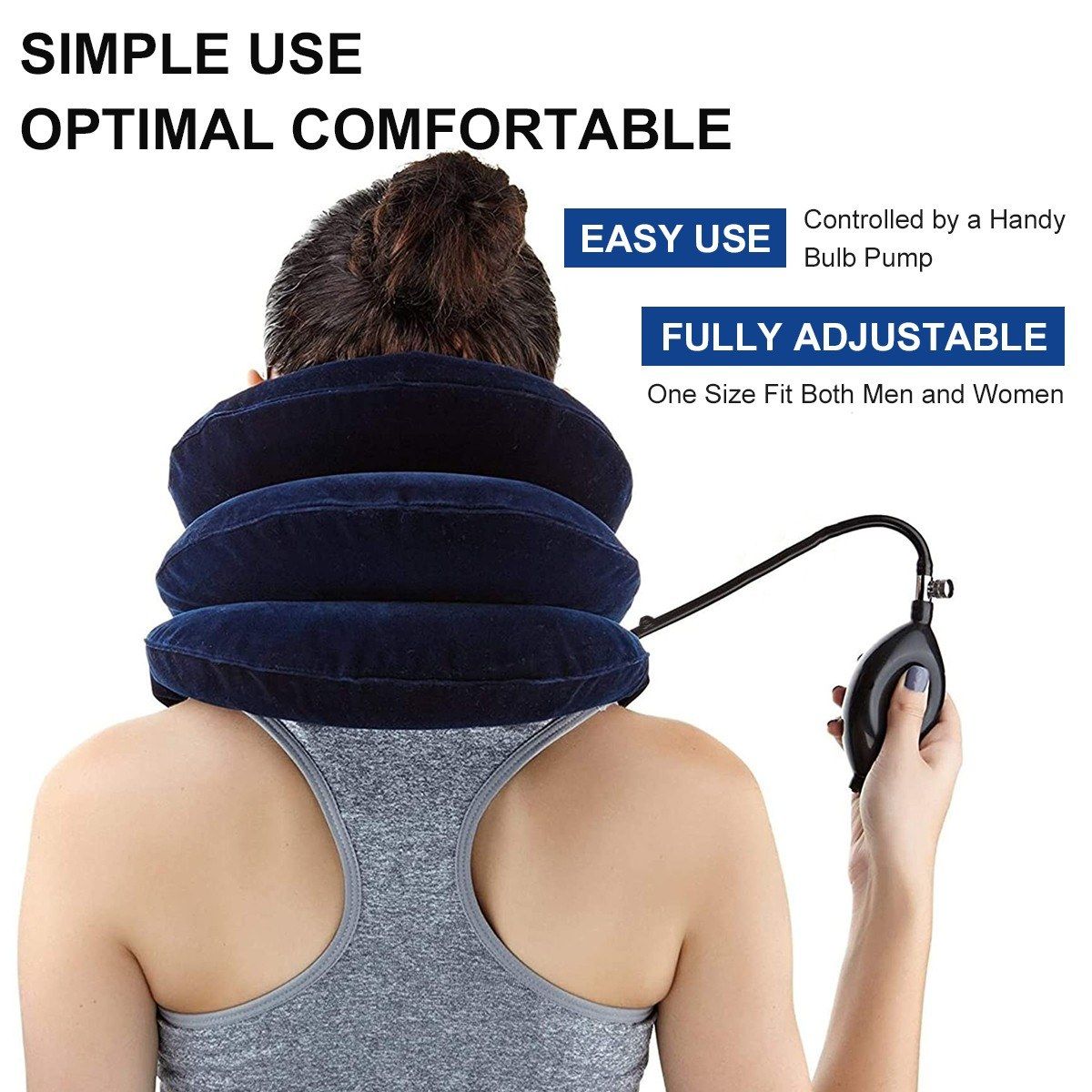 Fully Adjustable -- Soft and fully adjustable, the neck traction brace can be inflated for optimal comfort around your neck. One size fits most of the people, one cervical traction collar applicate to whole family.