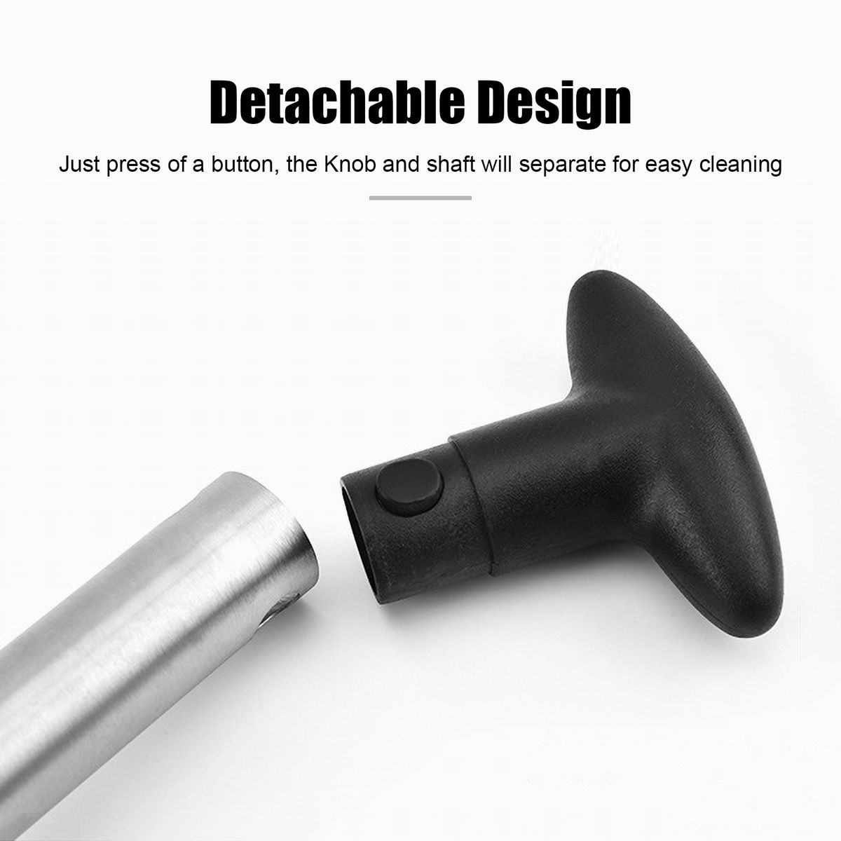 [Detachable]Knob and shaft separate with the press of a button for easy cleaning and are dishwashers safe.