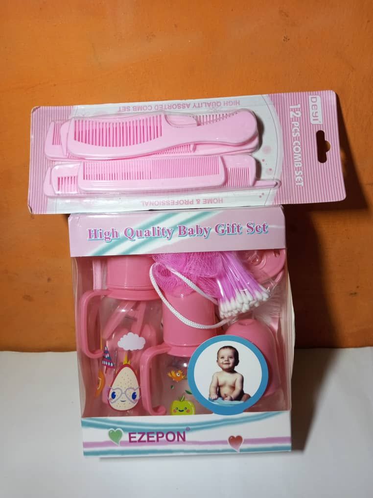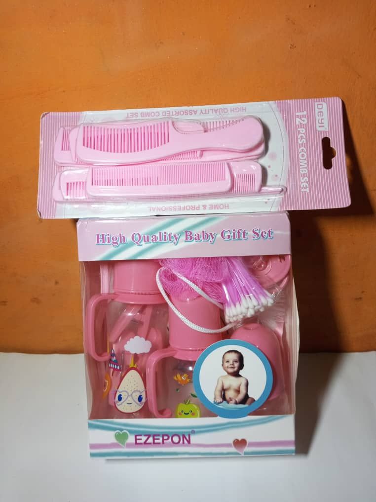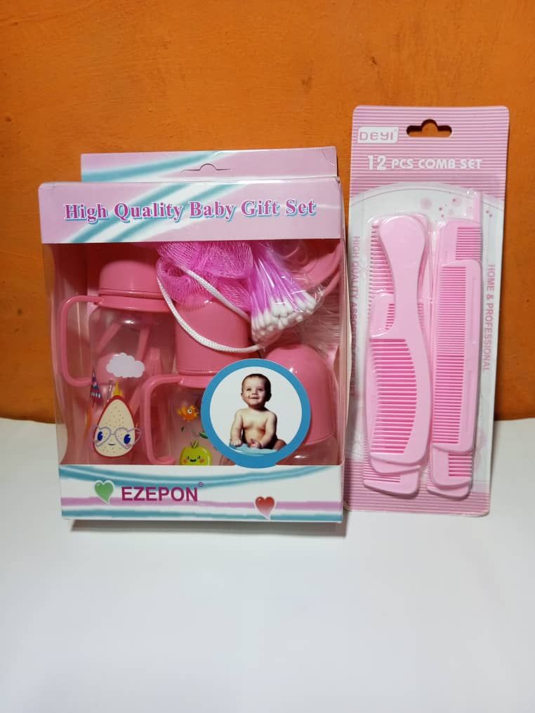 - Pink Feeding Bottle Baby Gift Set + 12pcs Comb