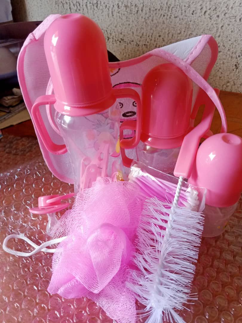 Also comes with baby feeding bottle set which consist of 3baby feeding bottles, baby sucker, baby bottle brush, baby clips, baby cutting buds etc.