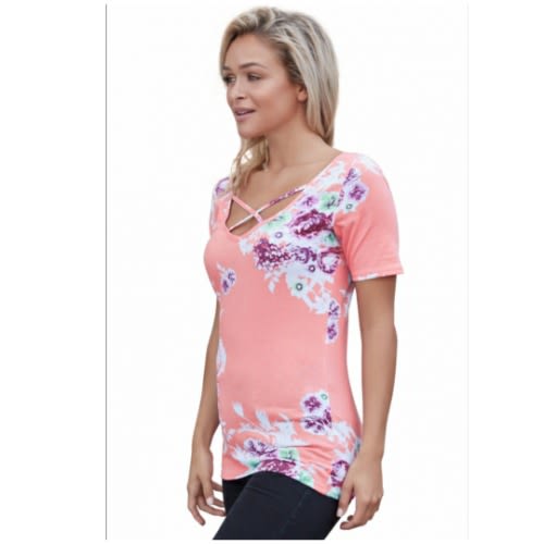 Buy Pink Floral Crisscross Neck Detail Short Sleeve Top - Pink in Nigeria