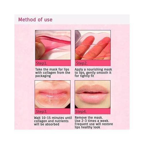 Sufficient collagen content Skin texture is even, smooth and neat. The mask will reduce lips dryness and will make your lips moisturized and attractive.
