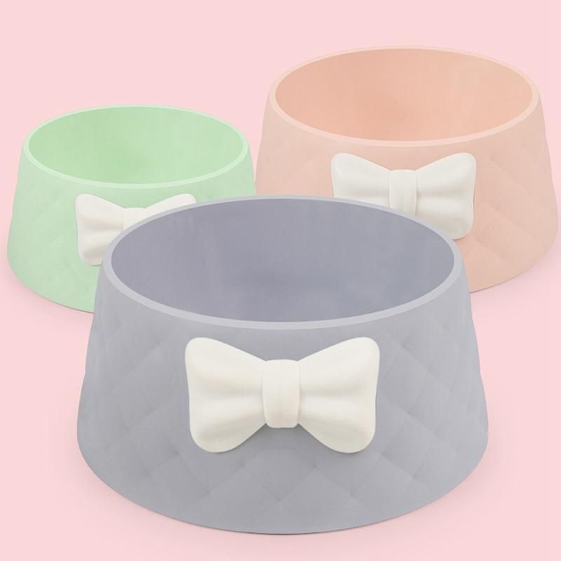 Pink Pet Dog Feeding Food Bowls Shock-Proof BowknotSize: Top diameter 15cm bottom diameter 18cm, height 8cm