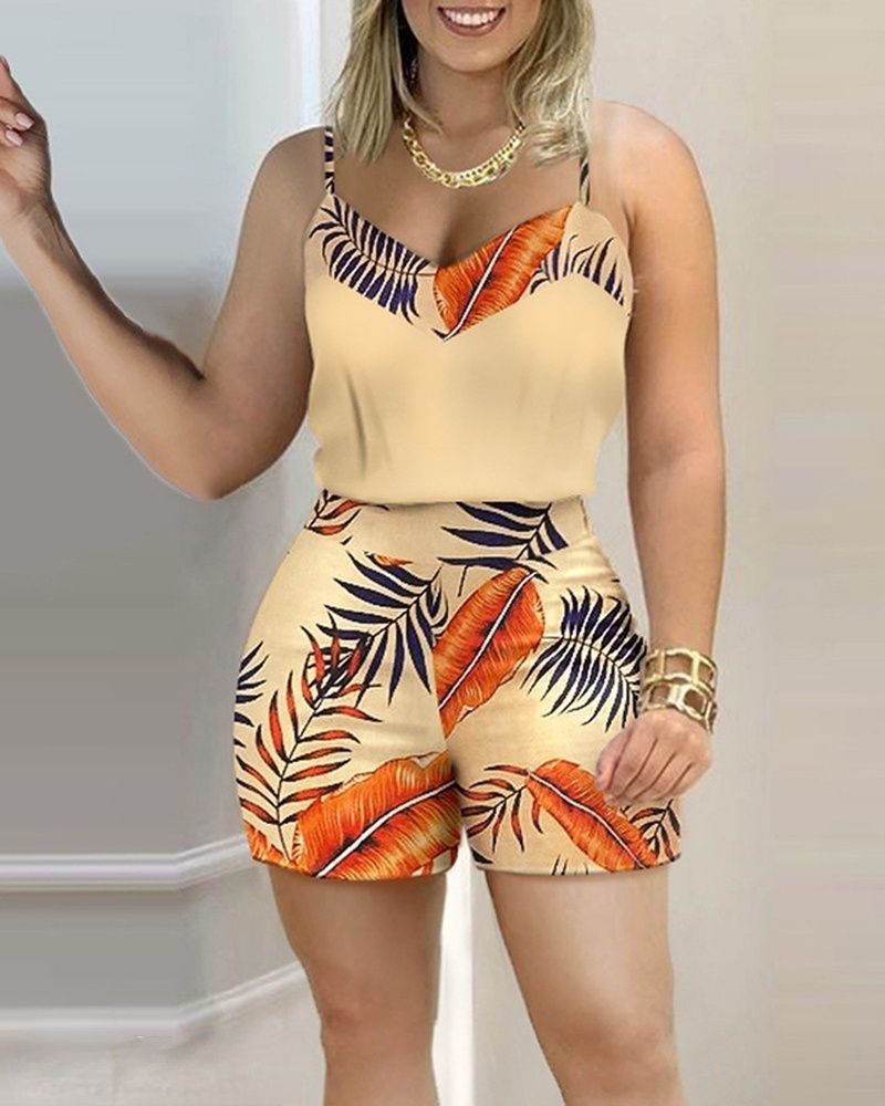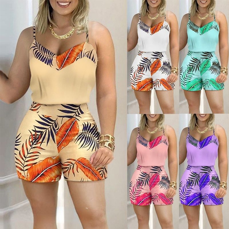 1X Two Piece Set for Women Summer Shorts and Tank Tops Matching Sets Sleeveless Camis Boho Print Beach Fashion Casual 2 Pcs Outfits