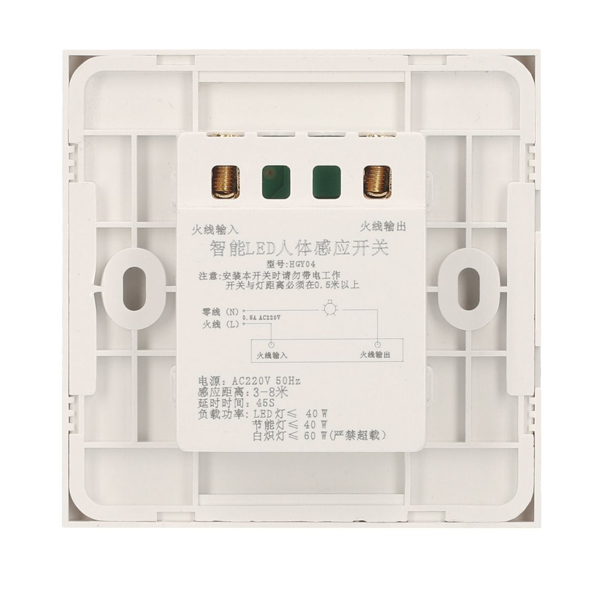Wiring method: live line in + live line out. Connect the switch to LED light ( le;40W), energy-efficient light ( le;40W) or incandescent light ( le;60W).