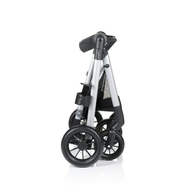 The Evenflo® Pivot® Modular Travel System is the multipurpose travel stroller you've been searching for! This exceptional carriage, stroller and car seat combo is a durable travel system that includes the SafeMax™ Rear-Facing Infant Car Seat and SafeZone™ Base. The modular frame can be configured with up to 6 modes of use, allowing your child to be parent-facing or forward-facing. The stroller offers multiple modes, including carriage mode, toddler mode, or a frame stroller with infant car seat. For comfort, carriage mode allows your baby to fully recline and stretch out. The toddler seat has a maximum weight of 50 lb, with height recommendations of up to 38 in. (96 cm), while the car seat has a maximum weight of 35 lb and up to 32 in. The SafeMax Rear-Facing Infant Car Seat is not only comfortable with a removable body pillow, it has been rollover and side-impact tested. It features an anti-rebound bar that limits the amount of rebound movement experienced in a frontal impact. Our integrated belt lock-off system provides peace of mind that the base has been securely installed. It includes a stay-in-car base that allows for a quick and easy infant car seat connection. The feature-rich stroller includes cruiser tires to make it easy to navigate over multiple surfaces, a large canopy with a peek-a- boo window, an oversized storage basket, removable arm bar with cup holder and snack tray, and convenient self-standing fold.