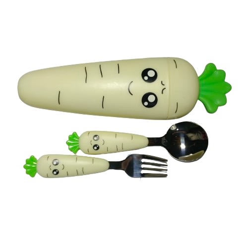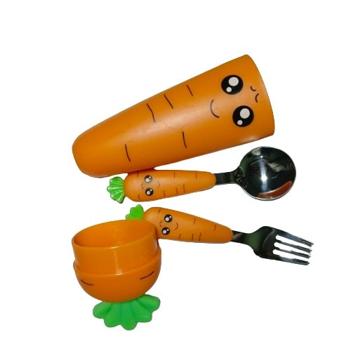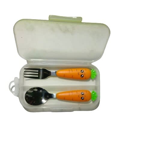 Spoon Fork Case Set Flatware 2 Piece Kitchen Hotel forA spoon cleanly sweeps up to the last by an edge of the straight shapeAs it is easy to eat noodles with the fork, it makes children interested in eatingIn one hand, children can easily hold the cute carrot l-shaped handleThe portable carrot case for both a spoon and a fork can be carried conveniently when going outChildren don't lose it in daycare centers or kindergartens (For Kids Only)Colour: YellowMaterial: stainless steel + PPSize: spoon:15.2x3.2cm, fork:15.2x2cmPackage Contents:1 * Spoon1 * fork