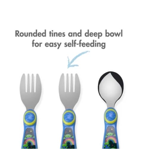 Easy hold: The product has been designed in such a way as to provide your kid a good grip over the spoon/fork while using it.It is also hygienic and bacteria resistant dishwasher safe. Can be treated as normal cutlery.