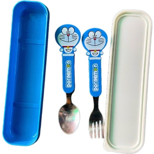 Baby Spoon & Fork Set & Box: Cute box keeps Spoon and fork safe from dust and make it easy to carry.Kids own cutlery set. Teach them to use cutlery. Perfect gift for kids.100% food grade safe stainless steel cutlery set with Plastic handle.
