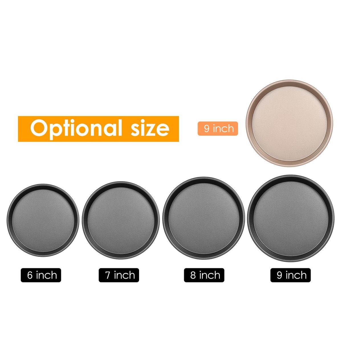 Optional 4 Size -- High-quality black bakeware with 4 optional size include 6/7/8/9 inch sizes, which can meet your needs for making pizzas of different sizes, and is very suitable for home ovens or pizza ovens cooking homemade pizza.