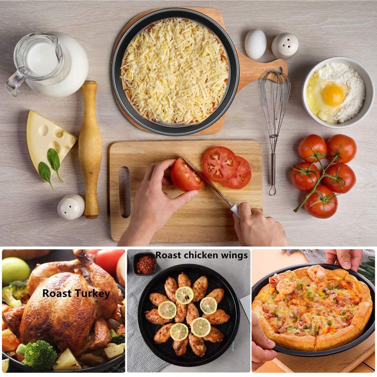 Multifunction Use -- This backware can make cakes, pizzas with multiple recipes, and can also be used to make fruit pies, cake molds, biscuit molds and grills. This is a great choice for your kitchen.