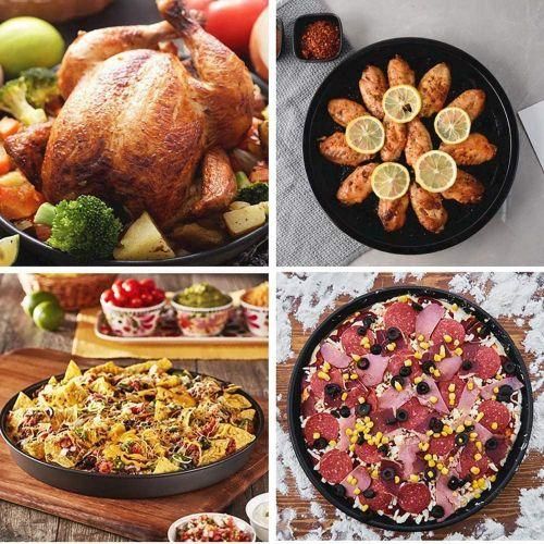 Multiple Applications: Two set pizza tray can offer multiple use base on different needs .that can not only make variety of pizzas and pie ,but also do breads biscuit cake. the bakeware is neccessory baking tool for home kitchen