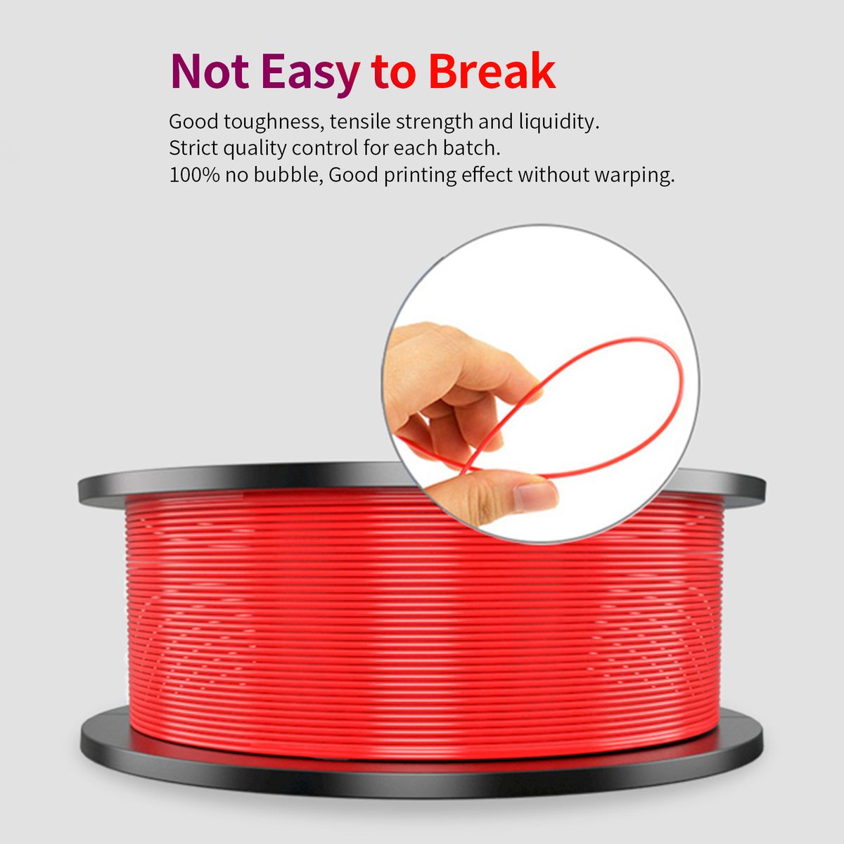 Good toughness, tensile strength and fluidity. Strict quality control for each batch. 100% no bubble. Good printing effect without warping.