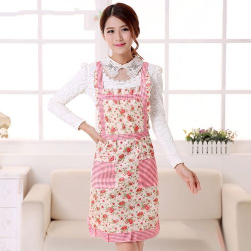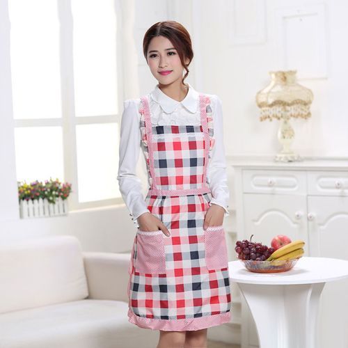 1X Women Apron with Pockets Waterproof Plaid Print Kitchen Double Layer Anti-oil Aprons Kitchen Cooking Thick Cloth Home Supplies