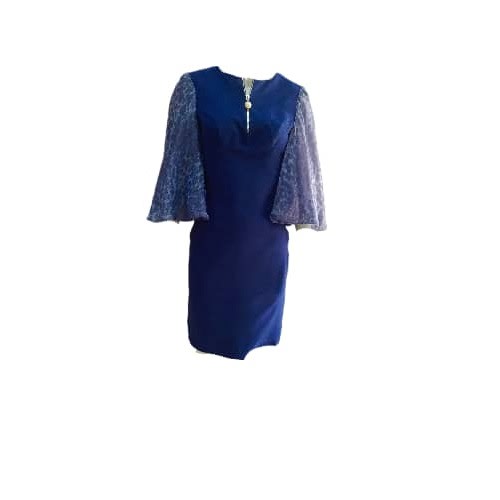 Buy Plain And Floral Front Zip Dress With Ball Sleeve Blue LG-9440 in Nigeria