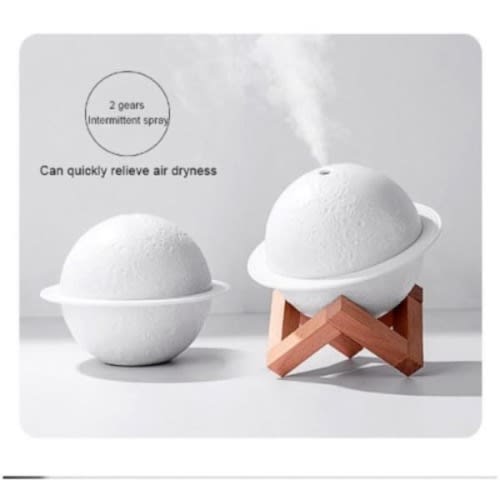 3 Colors Light & 2 Spray Modes]By touching the two probes on the top cover, you can control the humidifier or the light on/off, with white, warm white, yellow three lighting effects.2 spray modes: continuous/spaced (3S). Spray water is very fine and comfortable, no moisture feeling.[Multi-function Humidifier] This 3D Moon Humidifier is not only an air humidifier but an aromatherapy diffuser as well as a comfortable night light. The lamp is equipped with a USB charging cable, which can be used for car chargers, mobile power and computer charging, anytime, anywhere you need.[Safety & Healthy]This moon diffuser has a planet-shaped galaxy that has a concept of space.Made of ABS materials, unique moon-shaped design, safe for kids as well.[Cool Magic Night light]LED Nightlight creates flicker-free and comfortable lighting. Humidifier is perfect decoration lights for parties, weddings, anniversaries, children's bedrooms, living room, dining room, and outdoor decoration. Stimulate children's imagination and creativity.[Epic Gift Idea & User Guarantee] Stand out this Christmas with a special present! Awesome moon light, Giving this cute humidifier for kids a look that'll compliment a variety of room decorsize:138x138x105mmMaterial:ABScolour:WhiteWorking Current: 300-450mAUse Power: 8WPackage Contents:1 * Planetary Humidifier1 * USB cable1 * Chinese and English manualOnly the above package content, other products are not included.Note: Light shooting and different displays may cause the color of the item in the picture a little different from the real thing.