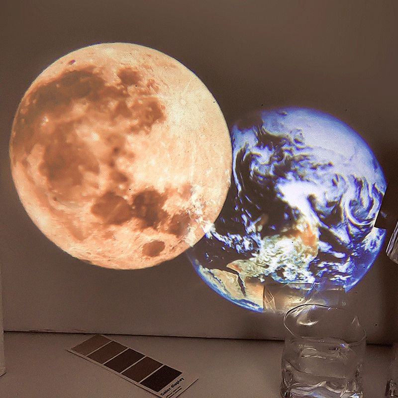 1X Planet Projection Lamp Moon Earth Galaxy Light Projector with 8pcs Light Sheets Background Atmosphere Light Party Photo Props