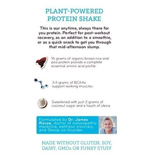 This is our anytime, always there for you protein shake. Perfect for post-workout recovery, as an addition to a smoothie, or as a quick snack to get you through that mid-afternoon slump. Each serving contains 16g of plant-based protein with a complete amino acid profile and 3.4g BCAAs. Just add one scoop of powder to 12-16 oz. of liquid and shake until smooth. Tastes great with water, plant milk, dairy milk, or in a smoothie.