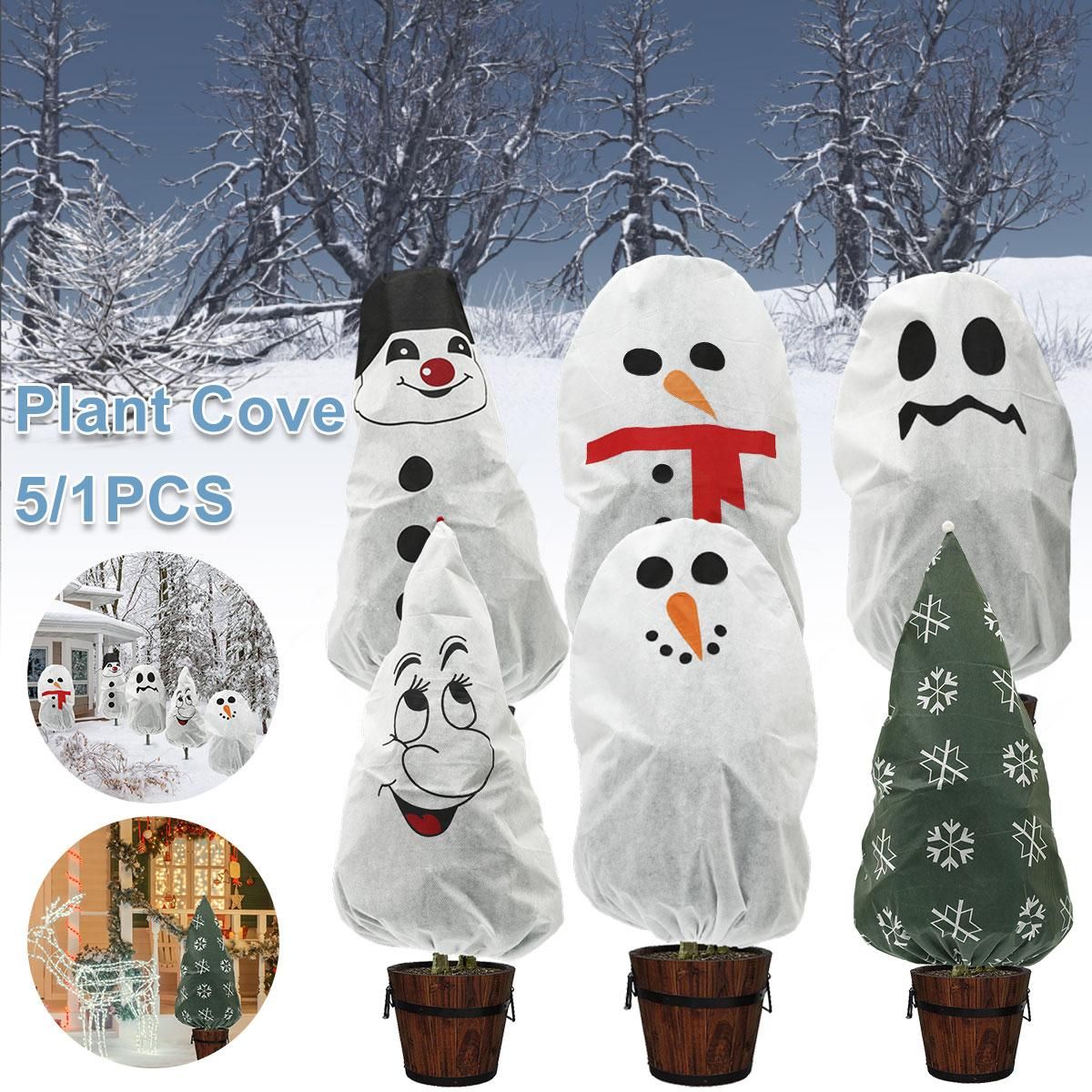 Plant Freeze Protection Cover Bag Garden Plant Cover Winter Freeze Frost Protection Warm Cover Plant Protecting Bag Snowman Xmas Decor
