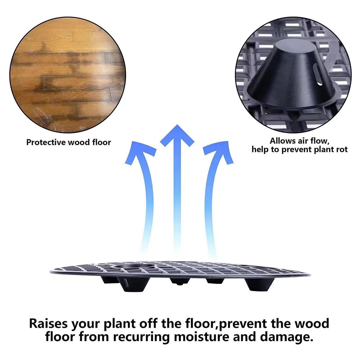 Designed as a floor plant protector, the plants pots holder can be used extensively to place on a table or floor in any room. Lift your plants pots off the floor or patio and then protect your floor from dust, rust, stains and scratches.