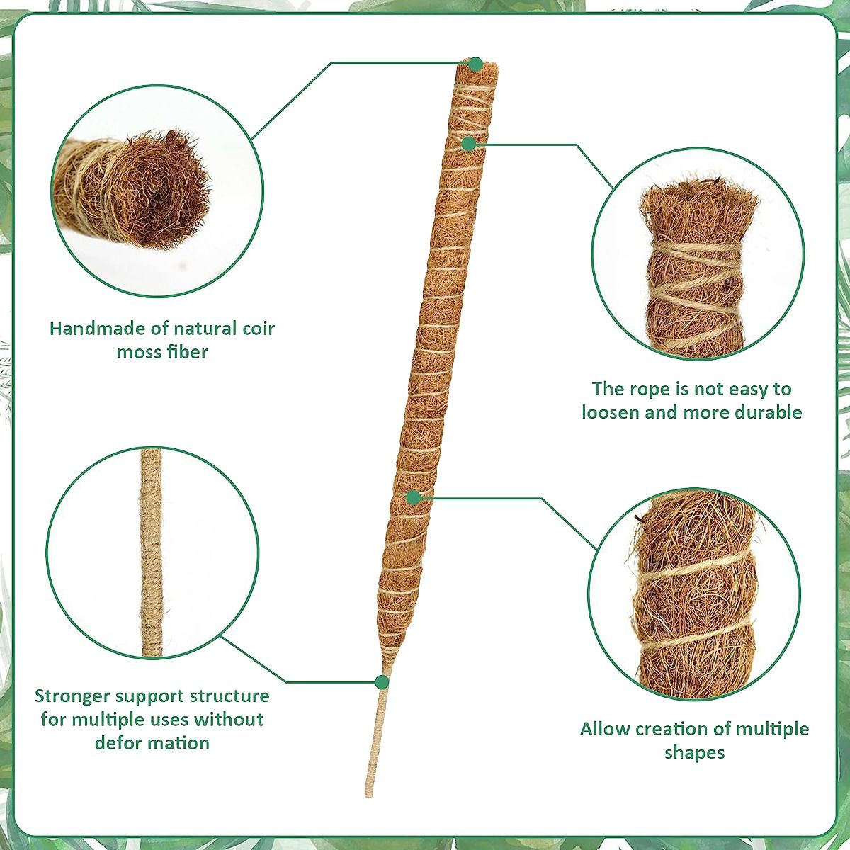 2,Fine Material: These Plant Stakes can be used for a long while because they are made from high-quality and natural coir material. Very sturdy, harmless, and not easy to break.
