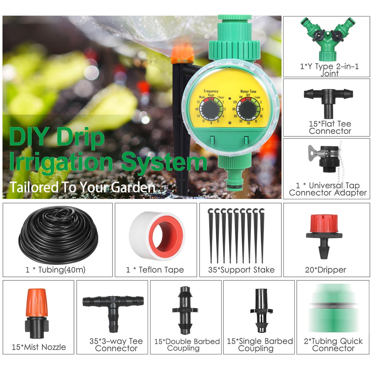 Irrigation drip kit only, other accessories in the pictures are not included.