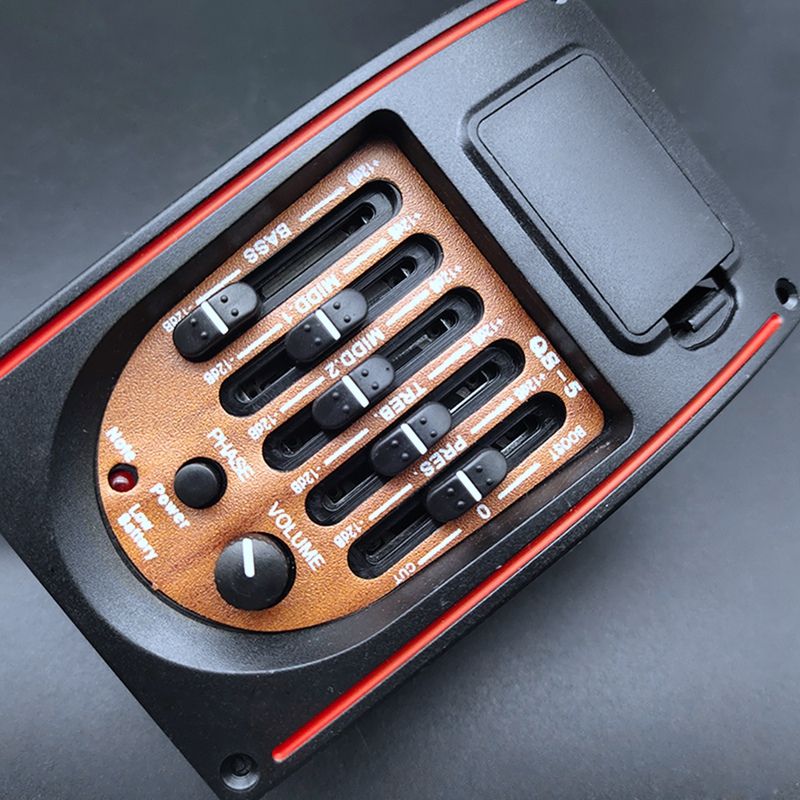Name:Plastic 5-Band Tone Controls EQ Equalizer Tuner Piezo Pickup Acoustic Guitar Pre-Wired Preamp Guitar Parts Accessories