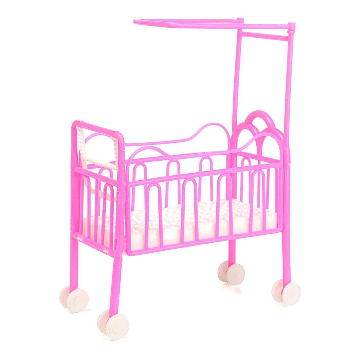 1X Plastic Baby Bed Miniature Dollhouse Toy Bedroom Furniture For Barbie Dolls