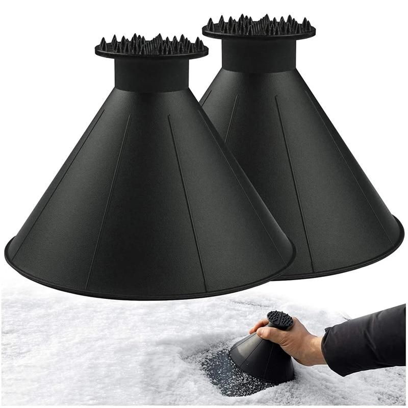 The is a ingeniously designed ice scraper and snow remover that's cone shaped, so you can simply move it in any direction or in circles to remove more snow from your tent at a time.