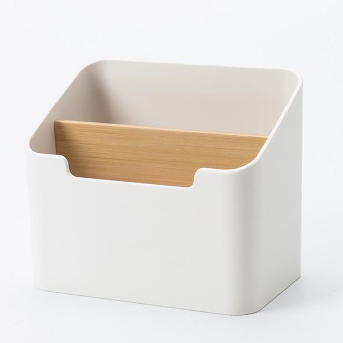 A simple 2-compartment storage case will make your messy table neat and organized in seconds. It consists of wooden board and plastic frame. Fastened by structure of mortise and tenon without using screws and driver.