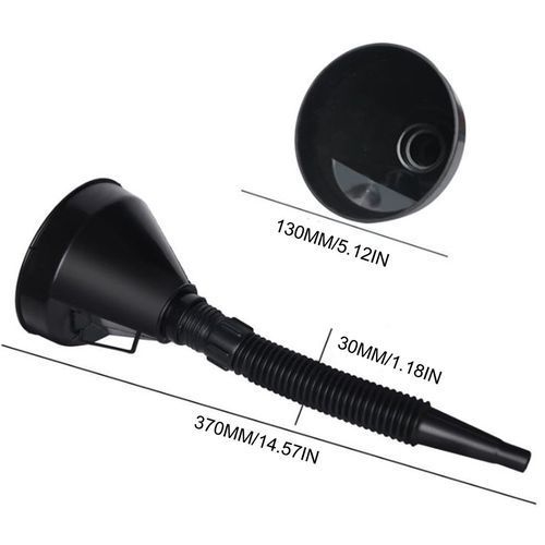 The Flexible ar Funnel has a mesh s reen strainer that filters out dam parti les from s.