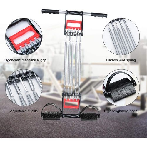 The chest expander is a deceptively simple piece of exercise equipment that consists of two handles connected by cables made of elastic tubing or metal springs. The cables offer varying levels of resistance, generally within the range of five to thirty pounds apiece. There are three cables, which means even with five-pound elastic tubes, you're still getting fifteen pounds of resistance every time you stretch the expander.colour may vary
