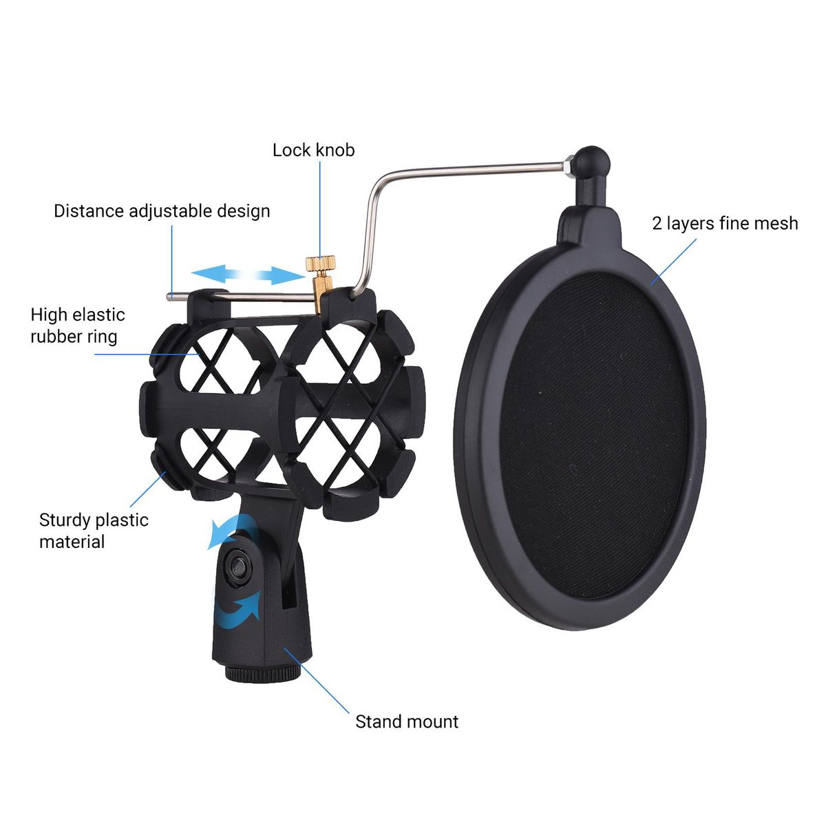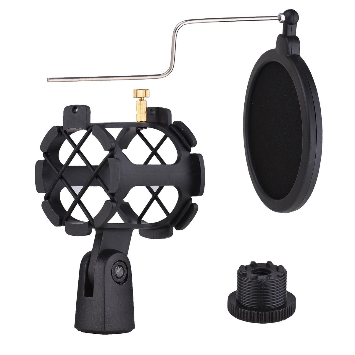 Buy Plastic Microphone Shock Mount Anti-vibration Mic Holder Stand with Pop Filter Universal Screw Adapter for Diameter 2cm-4cm Thin Condenser Microphone in Nigeria