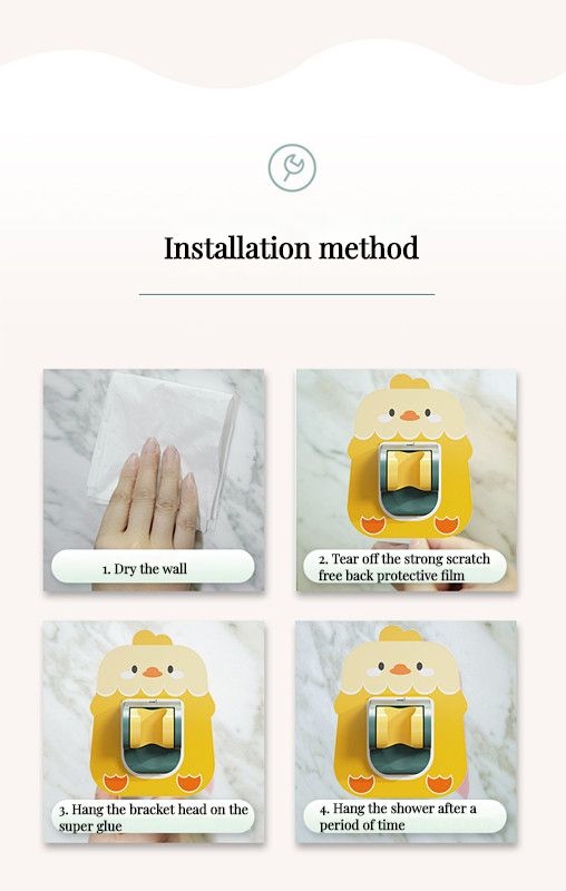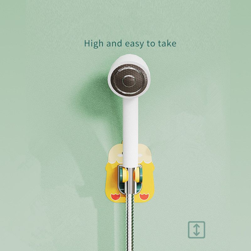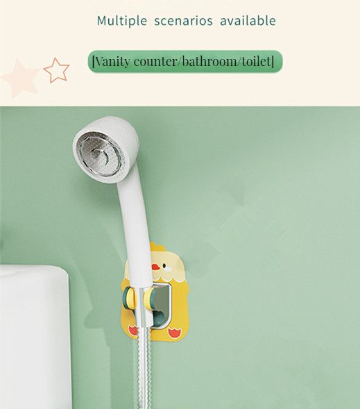 waterproof and moisture-proof, not easy to slip or fall off when washed by water.Applications: This shower head rack is suitable for home and hotel, a good accessory for bathroom and washroom.Textured: This shower head base is made of plastic, durable and reliable, it can be used for a long time.Decoration: This showerhead holder is designed in cartoon style, it can be used as a decor for bathroom.Specification:Material: