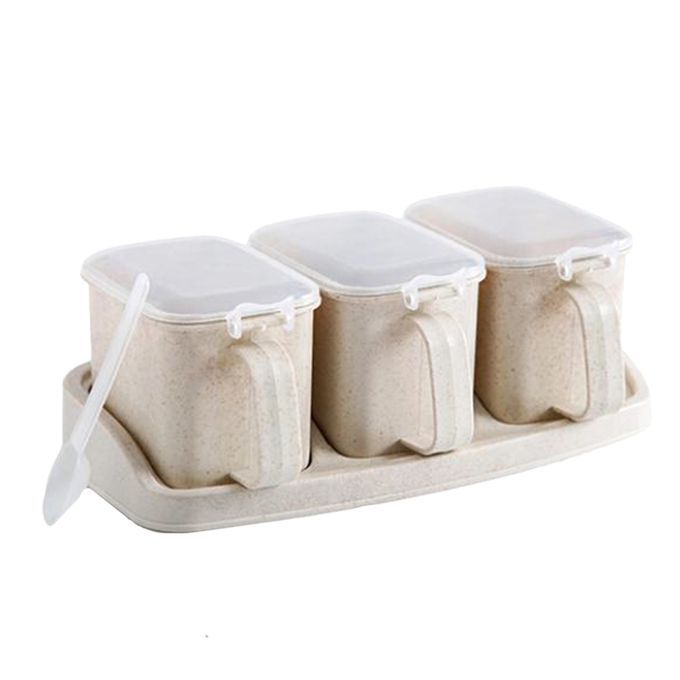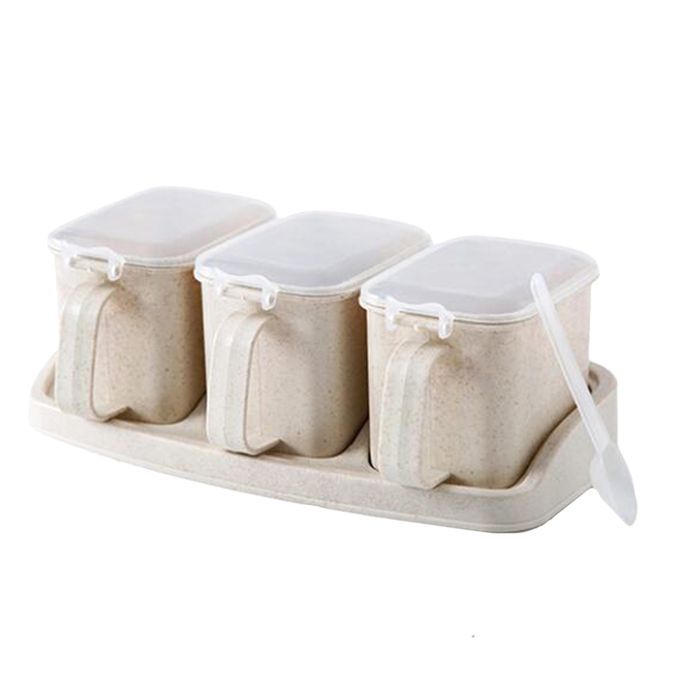 Kitchen Condiment Pot ;Seasoning Container with Lid and Serving Spoons;Plastic Empty Spice Jar Set with Labels;Herb Bottle Sugar Bowl Bakery;Pepper Storage Box Cruet Bottle Holder