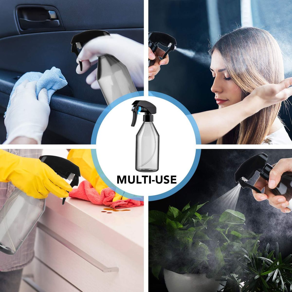 [High-quality bottle]: The transparent plastic spray bottle is made of high-quality and safe material, does not contain bisphenol A, is non-toxic, odor-free, chemical-resistant, anti-drop, and can withstand 120 Fahrenheit high temperature and deformation. The bottle mouth thread design prevents liquid leakage and refills, making your life more environmentally friendly.
