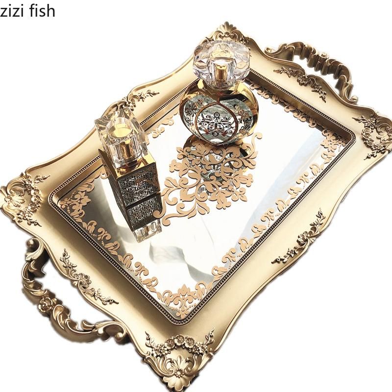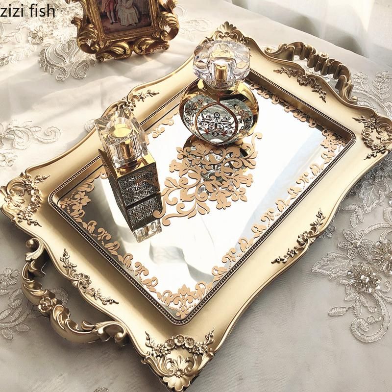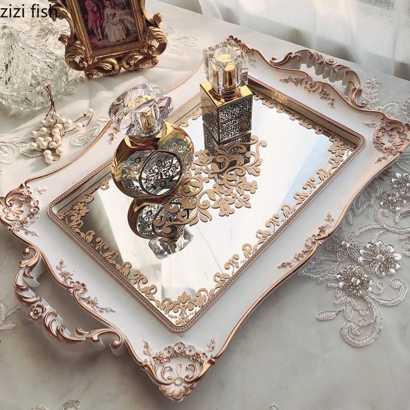 1X Plastic Storage Tray Mirror Surface Bathroom Supplies Storage Trays Household Rectangle Cosmetic Jewelry Plate Candy Snack Plate