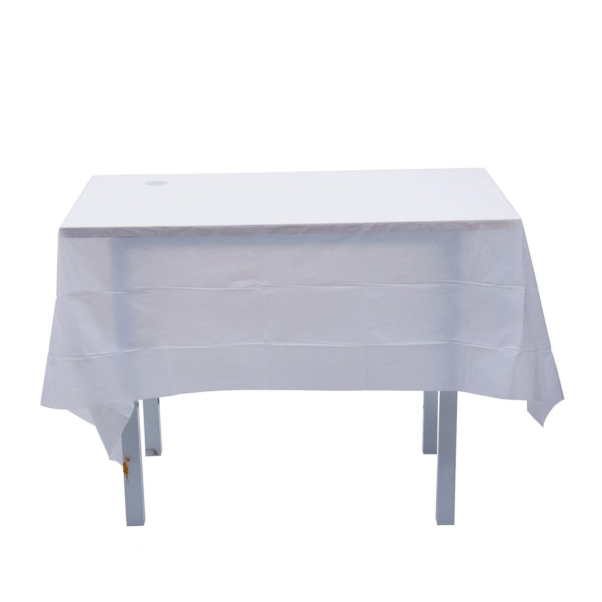 This plastic tablecloth is disposable, making after-party cleanup fast and easy.