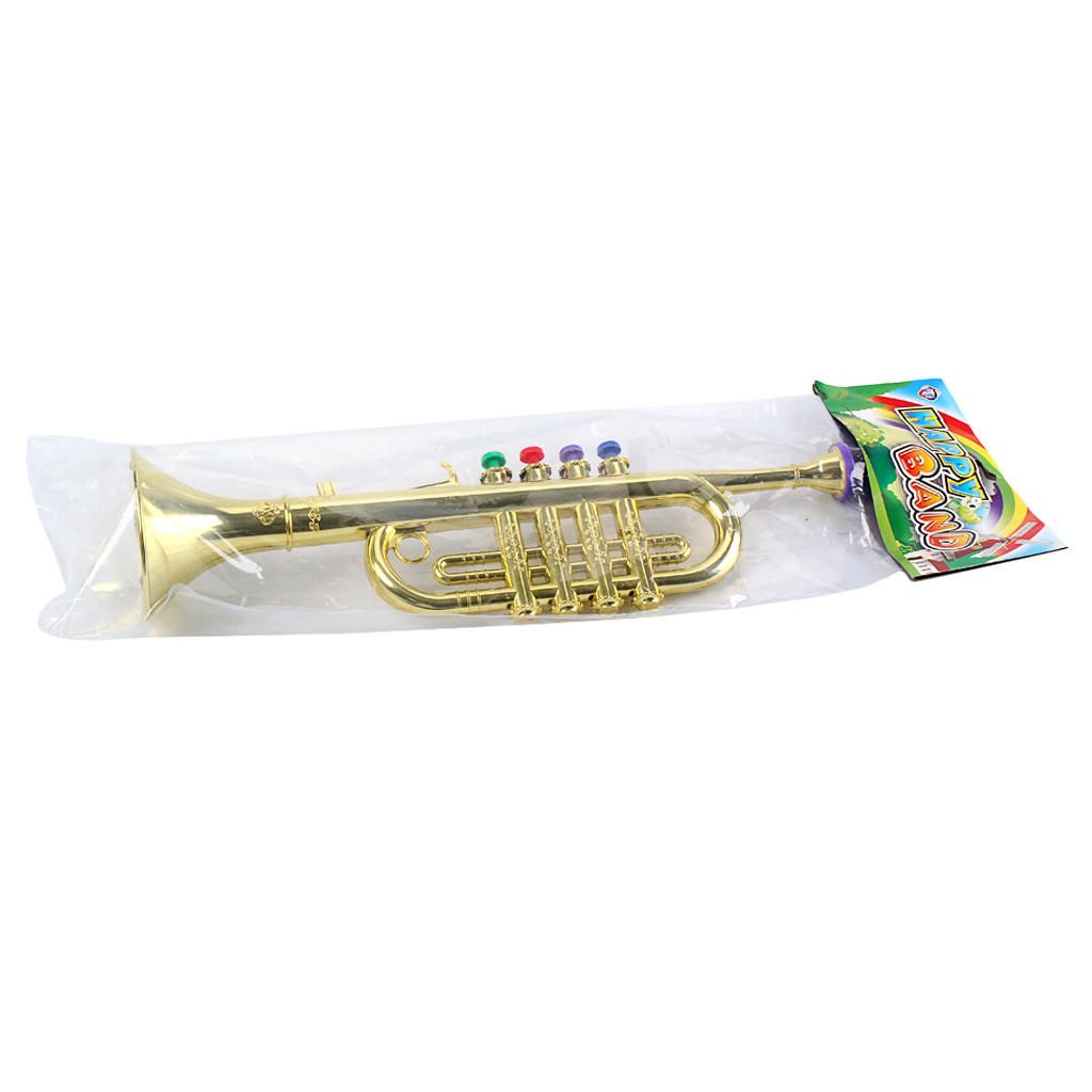 Kids Plastic Trumpet Horn Wind Instrument with 3 Colored Keys.ABS material with plating surface, compact size and lightweight.With 3 colored keys for playing 3 different notes, easy to make melody.Fun to play, can train children's sense of rhythm and encourage their musical intelligence.Can be used a musical instrument model for stage performance at school.