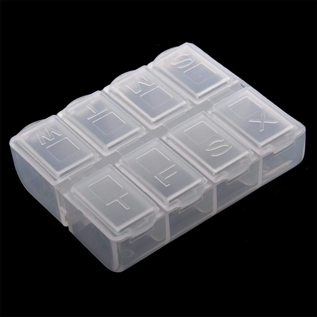 Plastic Weekly Pill Box Medicine Holder Clear WhiteProduct Name: Medicine Box Compartment Amount: 8; Material: Plastic Closed Size: 7.3 x 6.1 x 2.1cm / 2.8" x 2.4" x 0.8"(L*W*H) Color: Clear White Net Weight: 24g; Package Content: 1 x Medicine Box