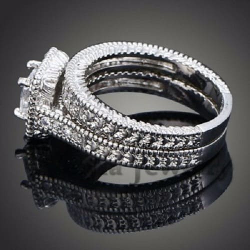 Buy Platinum & Crystal Plated Wedding/Engagement Ring - 2pcs in Nigeria