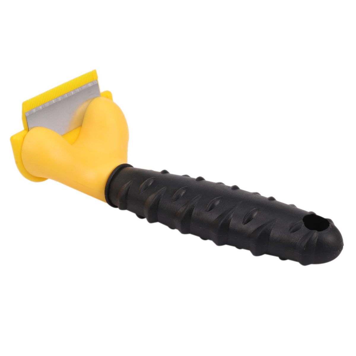 The tools unique stainless steel edge grabs loose undercoat hair and removes it without damaging the pets topcoat.