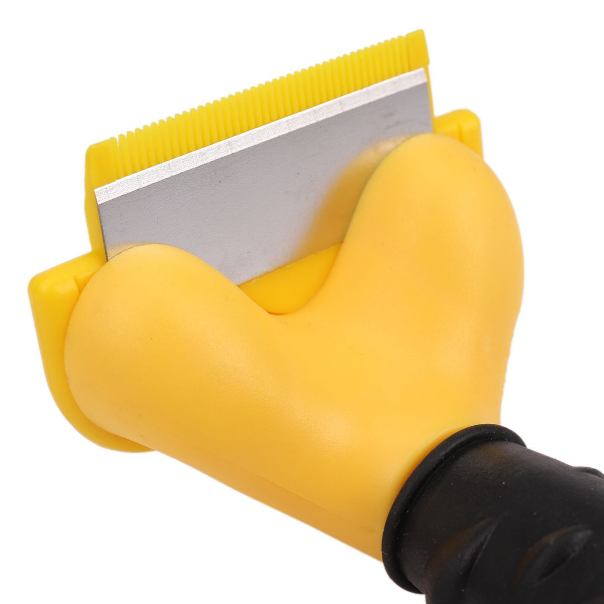 The tools unique stainless steel edge grabs loose undercoat hair and removes it without damaging the pets topcoat.