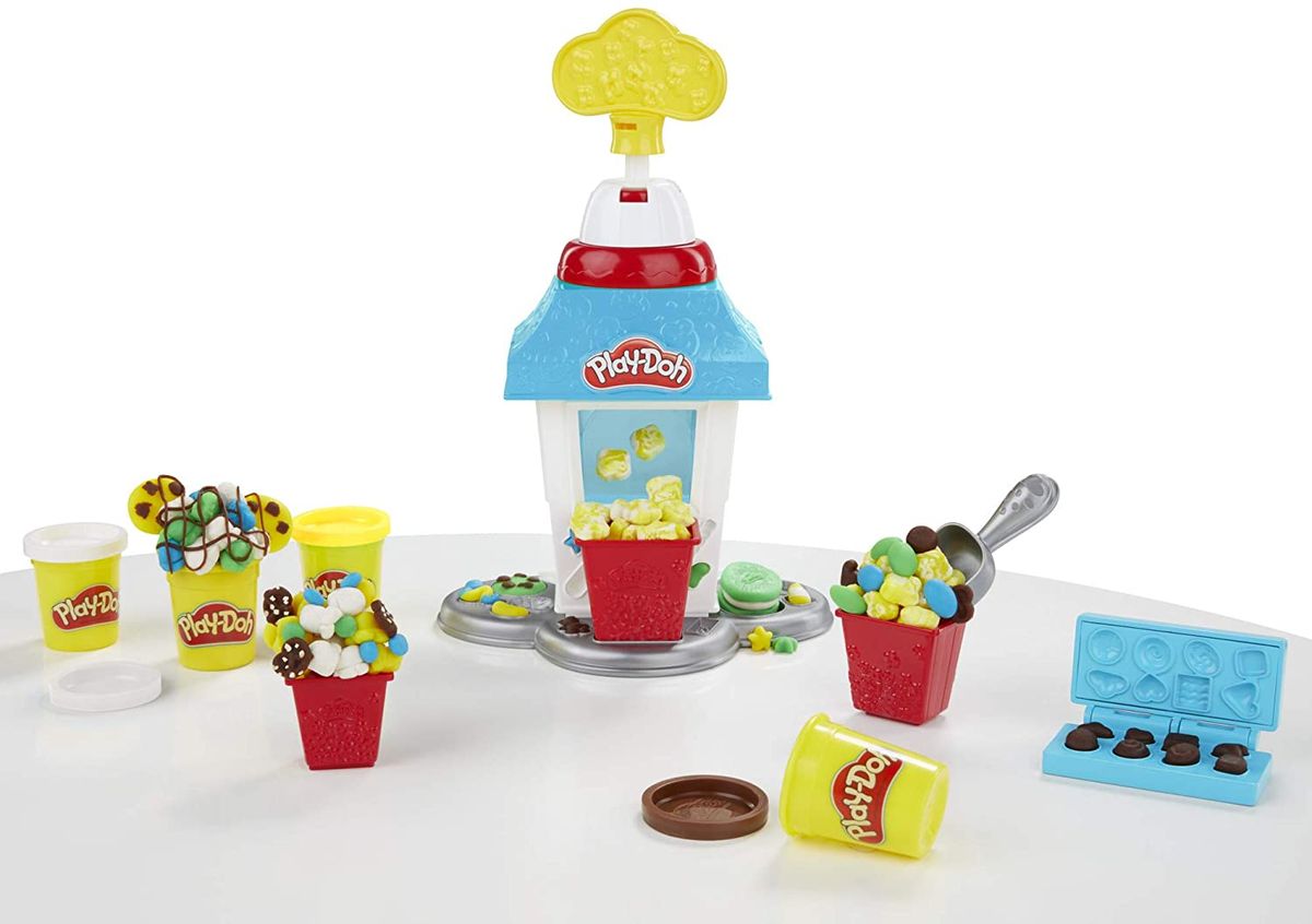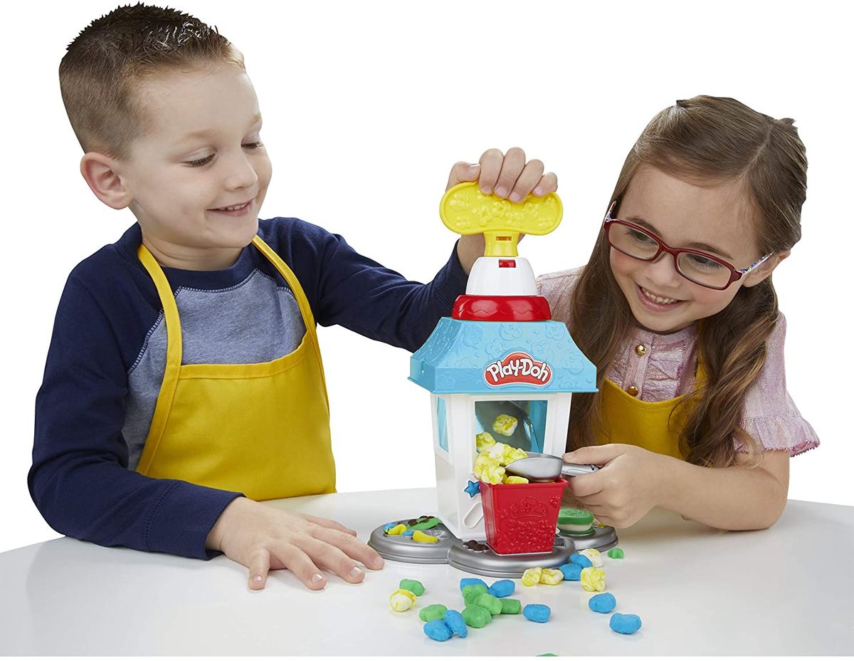 - PLAY-DOH POPCORN MAKER - This toy popcorn machine for kids ages 3 and up gets cranks buckets of pretend popcorn again and again!