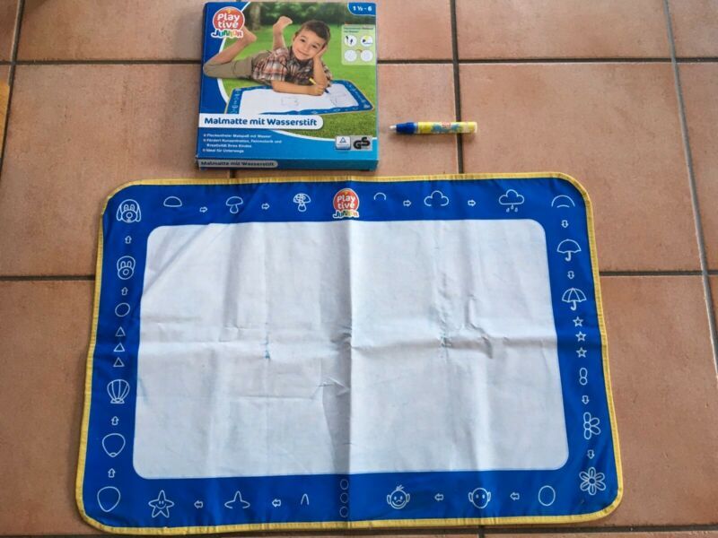 Promotes your child's concentration, fine motor skills and creativity. As if by magic, water creates pictures on the mat, once the water dries everything disappears and the painting fun begins again. Ideal for on the go. Including 1 pen with 2 attachments for 2 different line widths. With 4 loops for attaching and fixingRed: stain-free painting fun with water and a motif to color inBlue: Stain-free painting fun with water and great rainbow color effectsAge recommendation: from 18 months to 6 years. Dimensions: 720mm x 480mmPromotes your child's concentration, fine motor skills and creativity. As if by magic, water creates pictures on the mat, once the water dries everything disappears and the painting fun begins again. Ideal for on the go. Including 1 pen with 2 attachments for 2 different line widths. With 4 loops for attaching and fixingRed: stain-free painting fun with water and a motif to color inBlue: Stain-free painting fun with water and great rainbow color effectsAge recommendation: from 18 months to 6 years. Dimensions: 720mm x 480mm