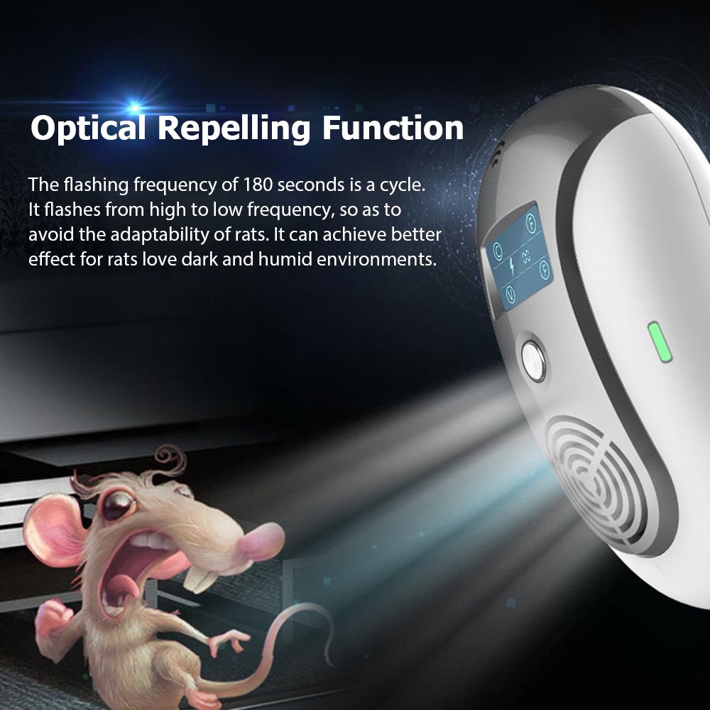 Ultrasonic repeller is mainly used to repel rats, mosquitoes, flies, cockroaches, bats, ants, fleas, geckos and spiders. It produces ultrasonic wave in a 360-degree all-around way to affect auditory and nervous system of the pests, thus making them flee the scene.