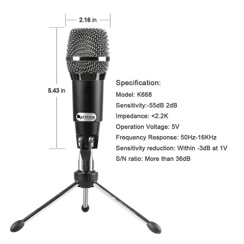 Fifine Plug &Play Home Studio USB Condenser Microphone for Skype, Recordings for YouTube, Google Voice Search, Games(K668)