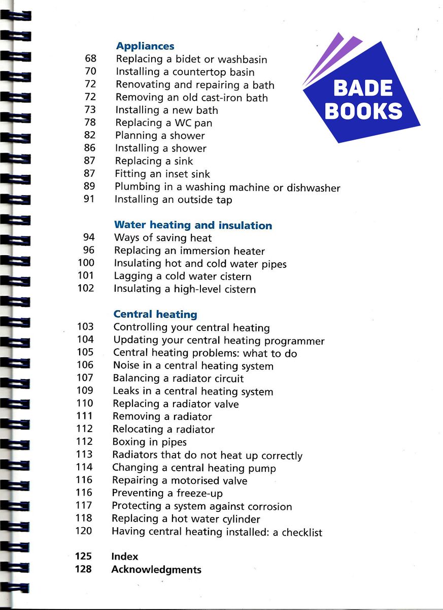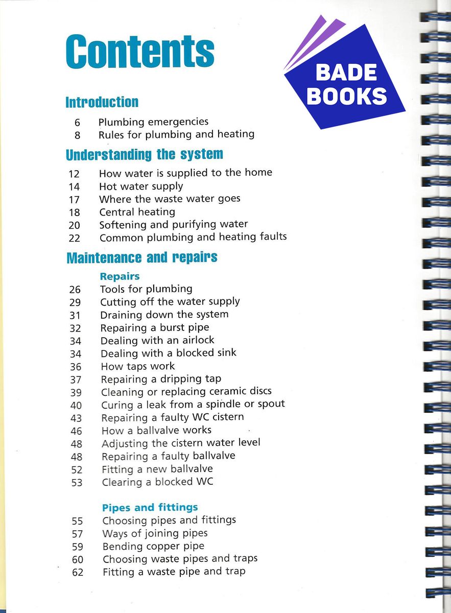 This handy book gives expert guidance on plumbing and heating - from unblocking a WC and mending a dripping tap to repairing a burst pipe and changing a central heating pump. Packed with practical information on tools and techniques, the guide also gives sensible advice on measures you can take to prevent problems occurring in the first place. A section on Understanding the System explains how your plumbing and central heating systems work with clear computer-generated 3-D diagrams. At-a-glance Security Check panels highlight the tasks you should carry out to keep your plumbing and heating in top working order while Fault Diagnosis panels pinpoint the source of common problems. The Maintenance and Repairs section gives detailed step-by-step instructions for all home plumbing and central heating repair and maintenance jobs, accompanied by full-colour photographs and diagrams showing all the latest DIY techniques. This book will give you the confidence and knowledge to tackle all plumbing jobs around the home for a fraction of the cost of a plumber's call-out fee.