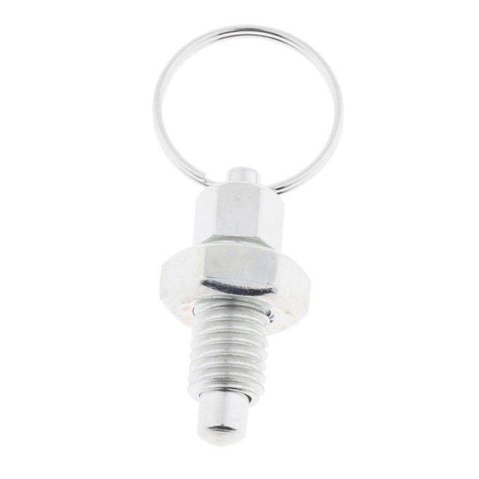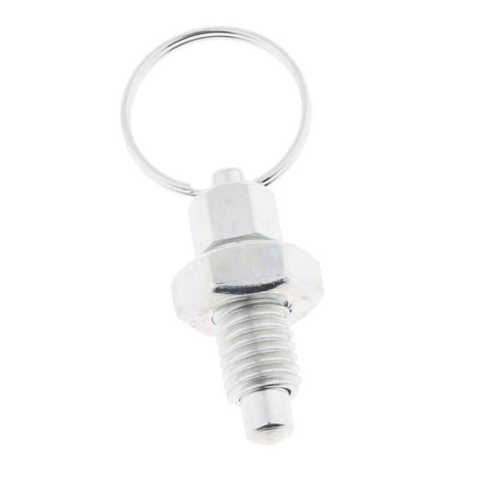 Stainless steel plunger body with pin and pull ring, metric coarse thread.