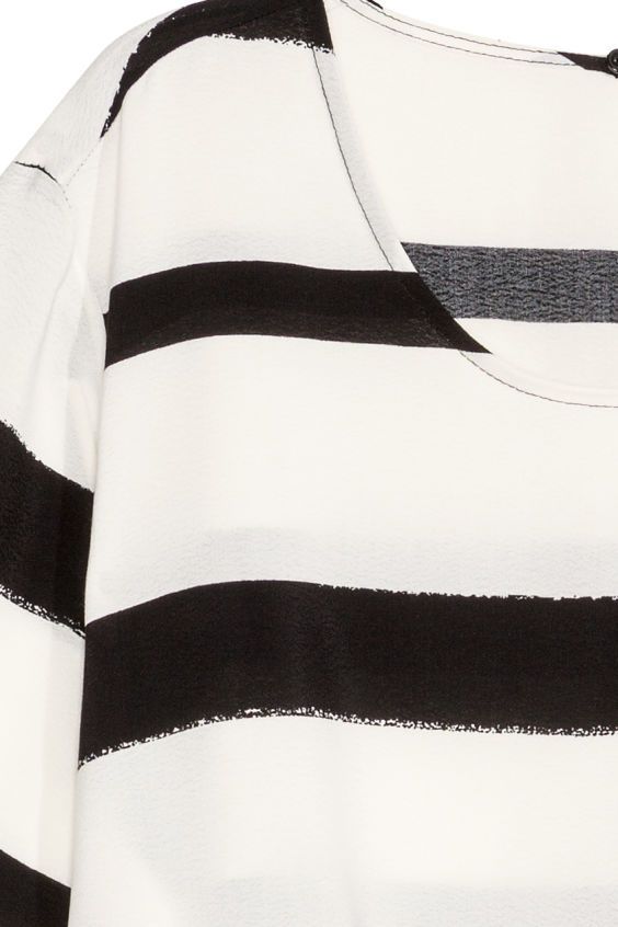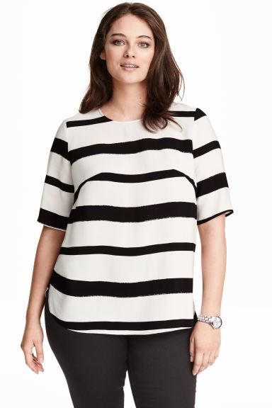 Wide blouse in a patterned weave with an all-over print, opening and button at the back of the neck, short sleeves and a gently rounded hem.